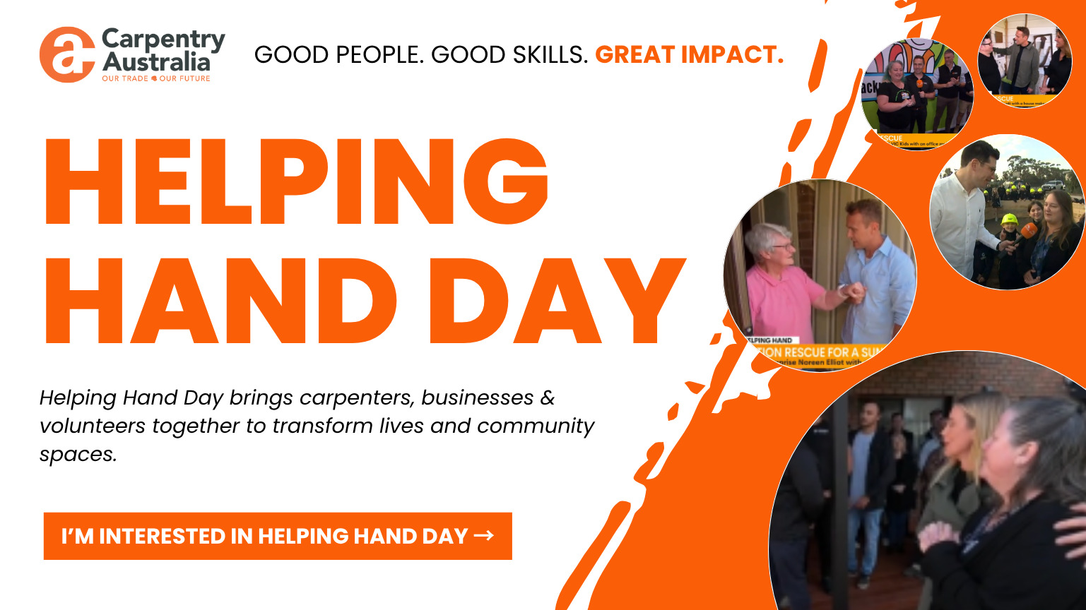 In 2025 we will be holding 4 x Helping Hand Community initiatives in partnership with Channel 7’s Sunrise. Bring carpenters, businesses and volunteers together to renovate real and community spaces.